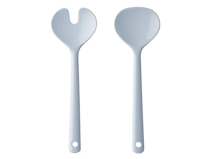 Slacouvert Synthesis in de kleur Nordic blue. Dit 2-delige saladebestek bestaat uit een kleine slalepel en slavork en past perfect bij de Synthesis saladeschalen. Het saladebestek is licht van gewicht en mag na gebruik in de vaatwasser.