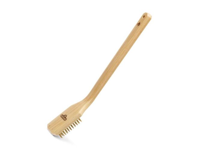 De Napoleon Essential messing bbq borstelis uitgevoerd met zachte messing borstelharen die effectief vuil verwijderen en veilig zijn voor zowel gietijzeren als RVS grillroosters. Het handvat is gemaakt van hout en ontworpen voor goede controle en duurzaamheid tijdens het reinigen. Dankzij de ophanglus kan de borstel eenvoudig aan de grill worden opgeborgen en blijft hij altijd binnen handbereik.