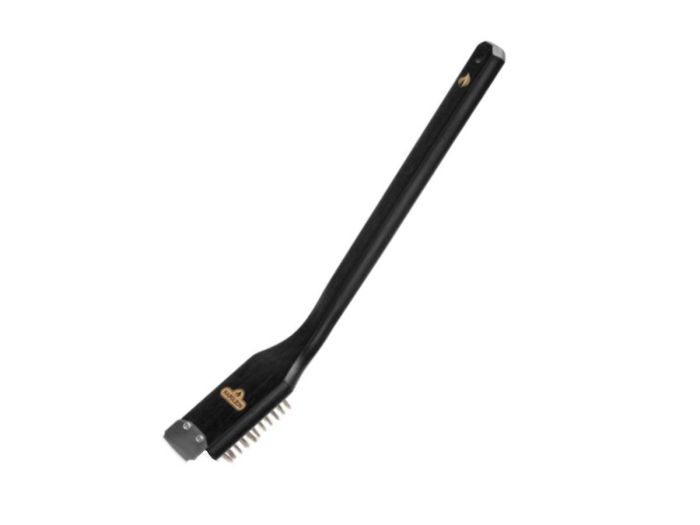 De Napoleon Essential RVS bbq borstel is voorzien van duurzame RVS borstelharen die geschikt zijn voor dagelijks onderhoud en effectief zijn tegen roest, kalkaanslag en hardnekkig vuil. Een geïntegreerde RVS schraper helpt bij het verwijderen van aangekoekte resten die met borstelen alleen lastig loskomen. De solide constructie is ontworpen voor langdurig gebruik. Het zwarte houten handvat zorgt voor goede controle tijdens het reinigen en is afgewerkt met een ophanglus voor eenvoudige opslag aan de grill.