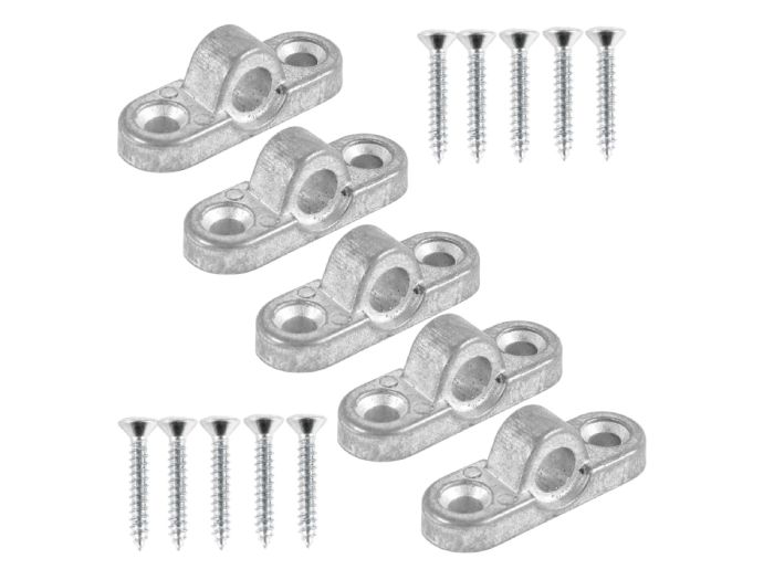 Eine Vorzelt-Öse aus Zinkguss ist eine ideale Option für die Befestigung von Vorzelten an Wohnwagen oder Wohnmobilen beim Camping. Die Öse besteht aus hochwertigem Zinkguss, was sie besonders robust und langlebig macht. Mit ihrer stabilen Konstruktion gewährleistet sie eine sichere und zuverlässige Befestigung des Vorzelts. Die Vorzelt-Öse ist speziell für den Einsatz im Campingbereich entwickelt und bietet eine optimale Passform für Vorzelte an Wohnwagen und Wohnmobilen. Die Öse ist für den Außenbereich geeignet und hält den Belastungen von Wind und Wetter stand. Die Montage der Vorzelt-Öse ist einfach und schnell. Sie kann entweder an bereits vorhandenen Befestigungspunkten oder an speziell dafür vorgesehenen Halterungen mit den beiliegenden Schrauben angebracht werden. Dank ihres Zinkguss-Materials ist die Öse widerstandsfähig gegenüber Korrosion und anderen Umwelteinflüssen, was ihre Lebensdauer erhöht. Mit der Vorzelt-Öse aus Zinkguss können Sie Ihr Camping-Vorzelt sicher und stabil befestigen und Ihre Zeit im Freien voll und ganz genießen. Verlassen Sie sich auf die Qualität und Zuverlässigkeit dieser hochwertigen Öse, um Ihre Camping-Erfahrung noch angenehmer zu machen.  ·      Vorzeit-Öse Waagerecht ·      Bohrung / Öffnung ca. 8mm ·      5 x Ösen aus Zink-Guss ·      10 x Schrauben V2A ·      Bohrlochabstand 3 cm