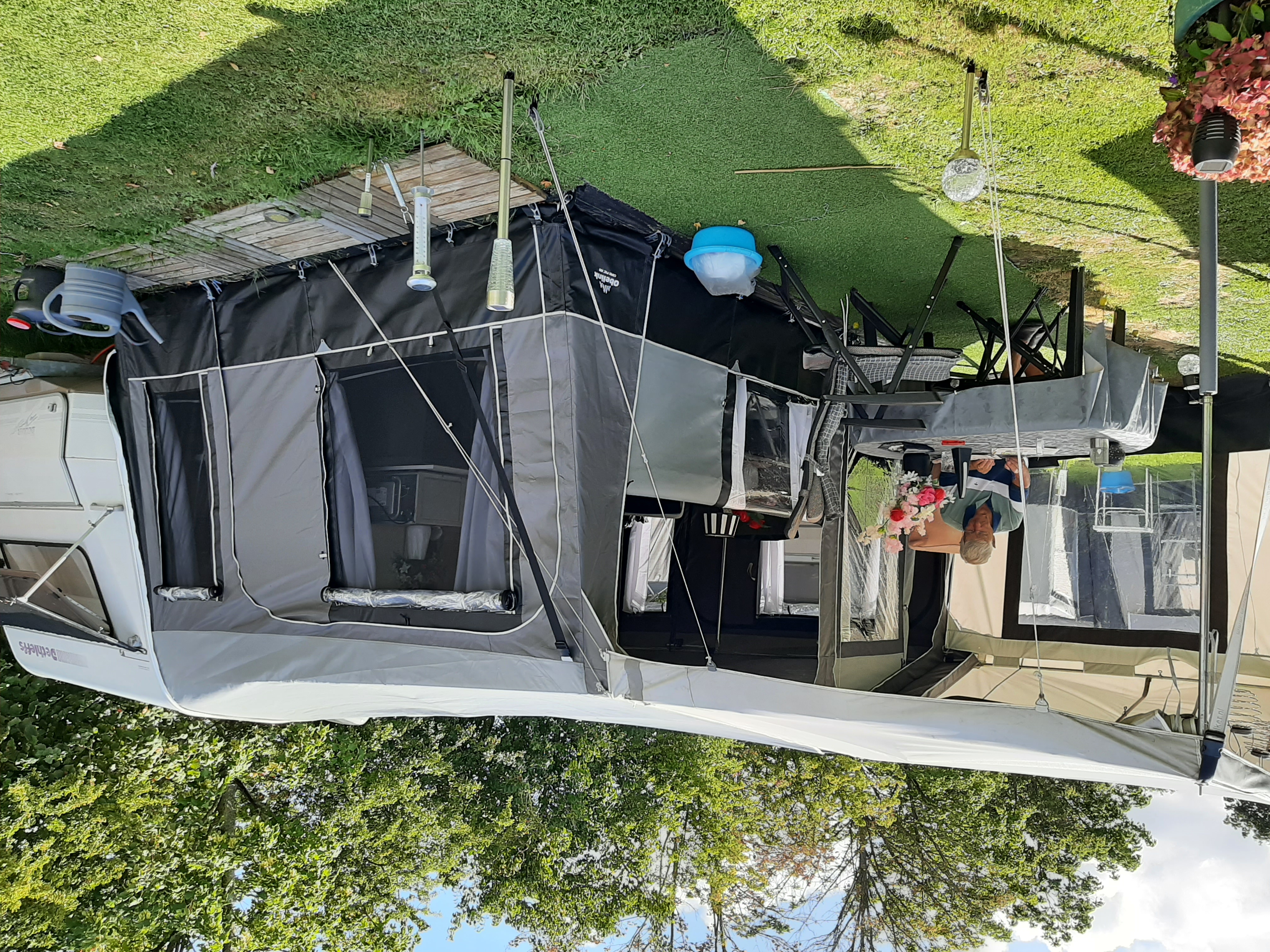 Een petluifel is een dakoverstek die je bij de meeste traditionele caravanvoortenten tegenkomt.
