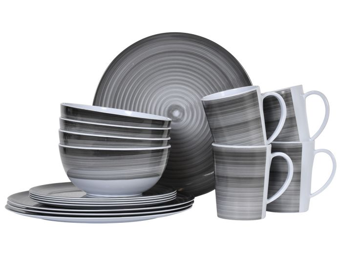 De set bestaat uit 4 dinerborden (Ø 25 cm), 4 ontbijtborden (Ø 19,8 cm), 4 schaaltjes (Ø 15,2 x 6 cm) en 4 mokken met oor (280 ml) en is daarmee geschikt voor vier personen.