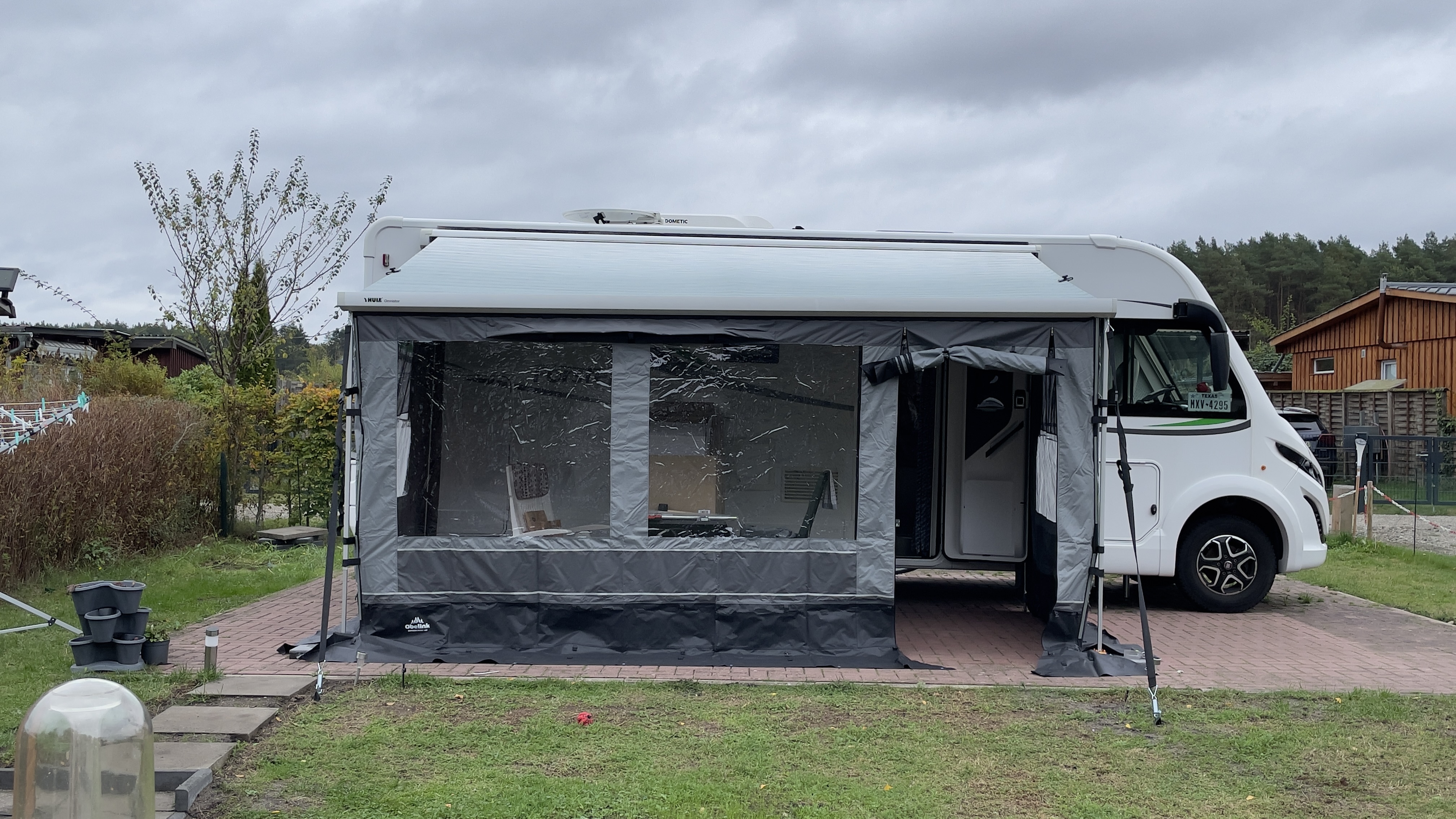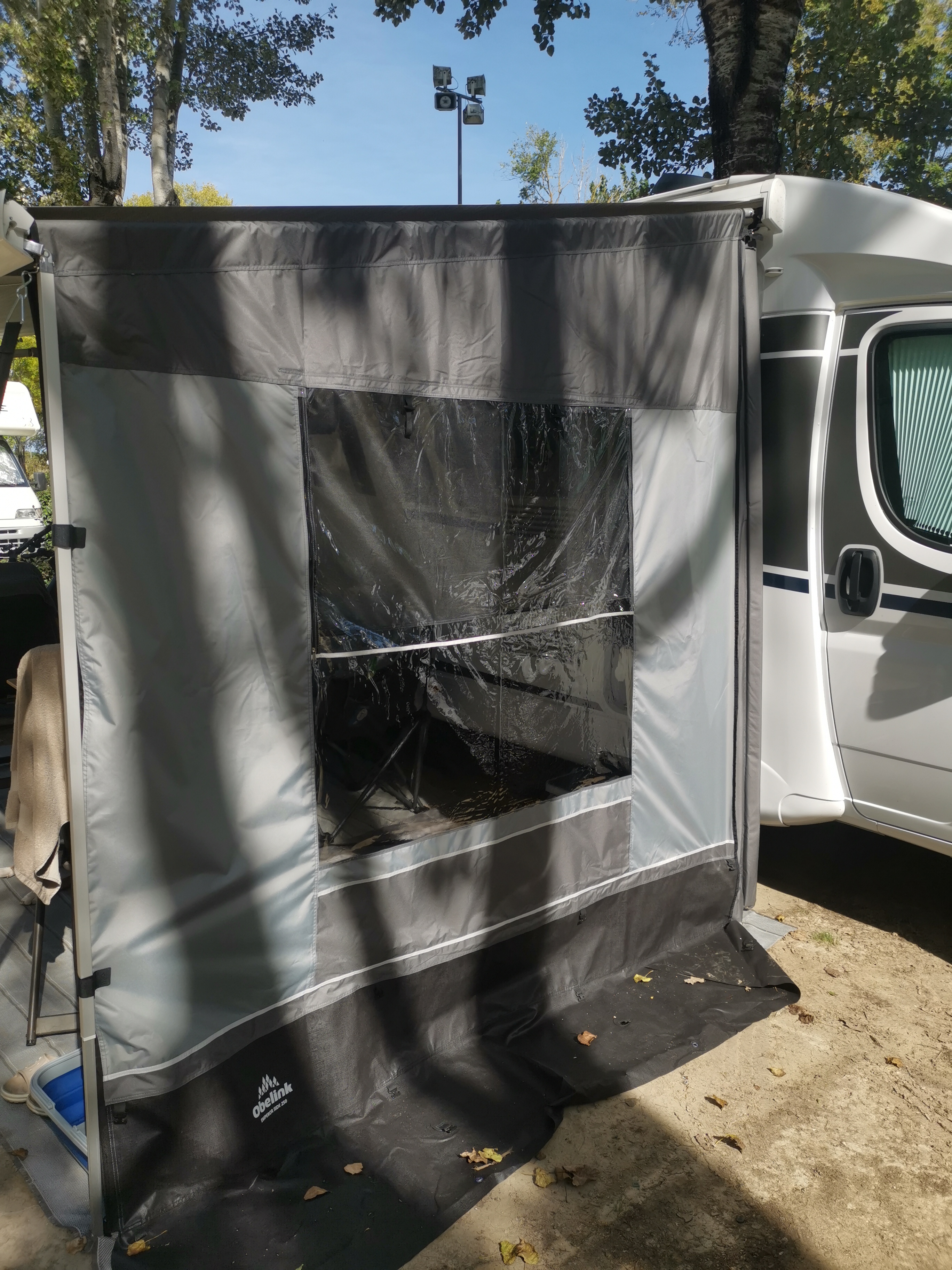 Dit is de manier waarop de achterkant van de zijwand tegen de camper- of caravanwand gemonteerd zit.