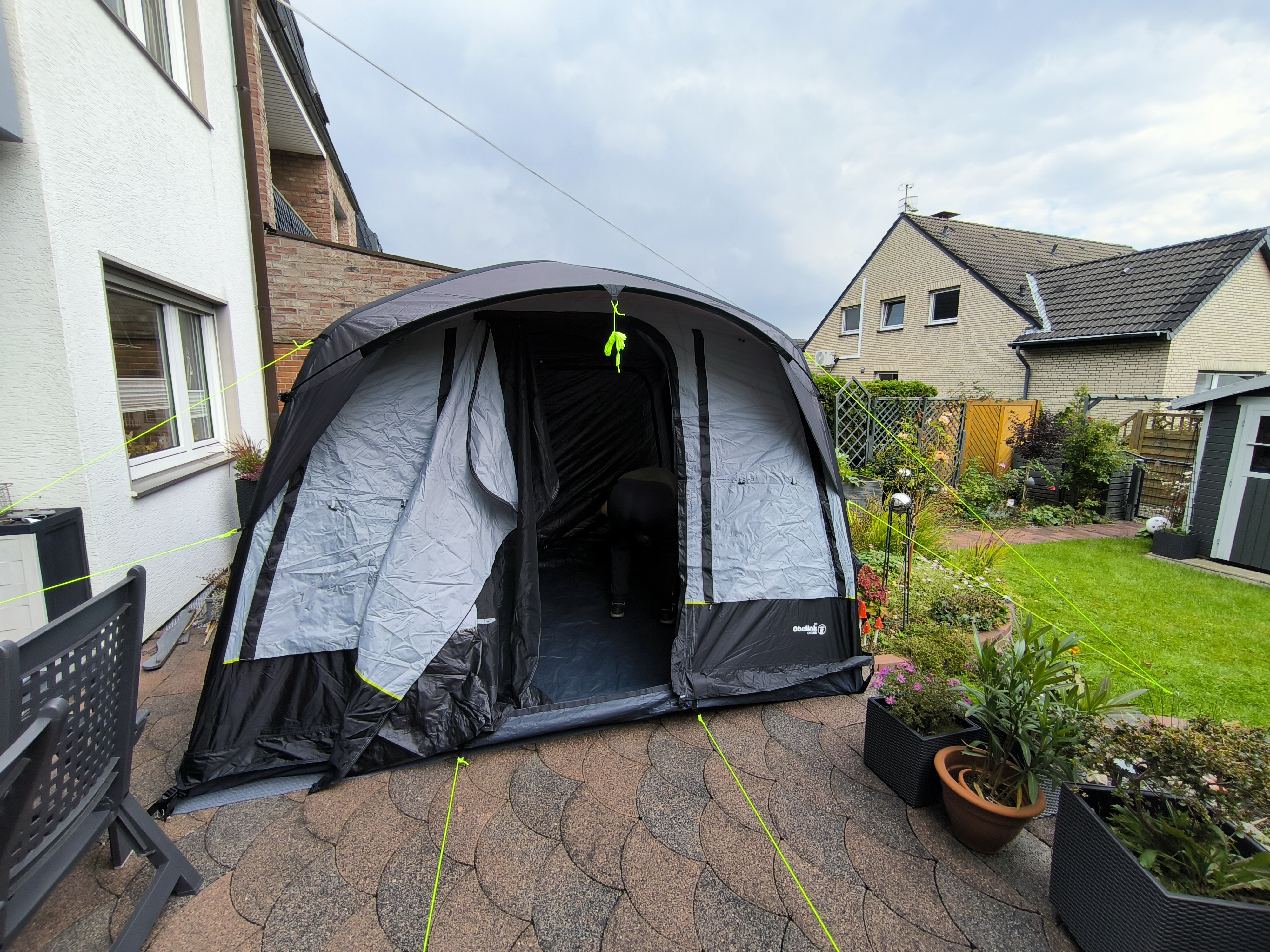 Een vrijstaande tent kan ook zonder camper of bus blijven staan. Dit is vooral handig wanneer je op pad gaat, maar de tent niet wilt afbreken.