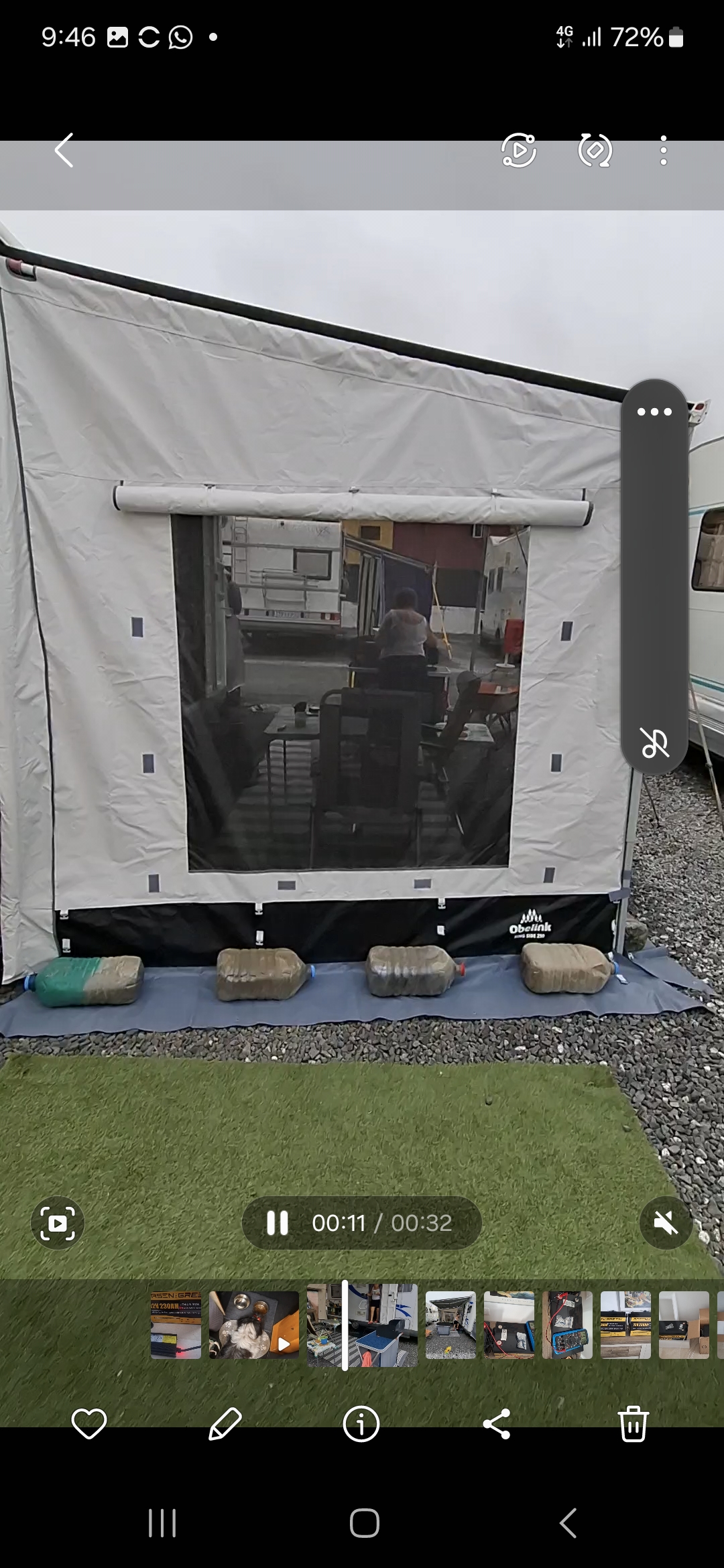 Dit is de manier waarop de achterkant van de zijwand tegen de camper- of caravanwand gemonteerd zit.