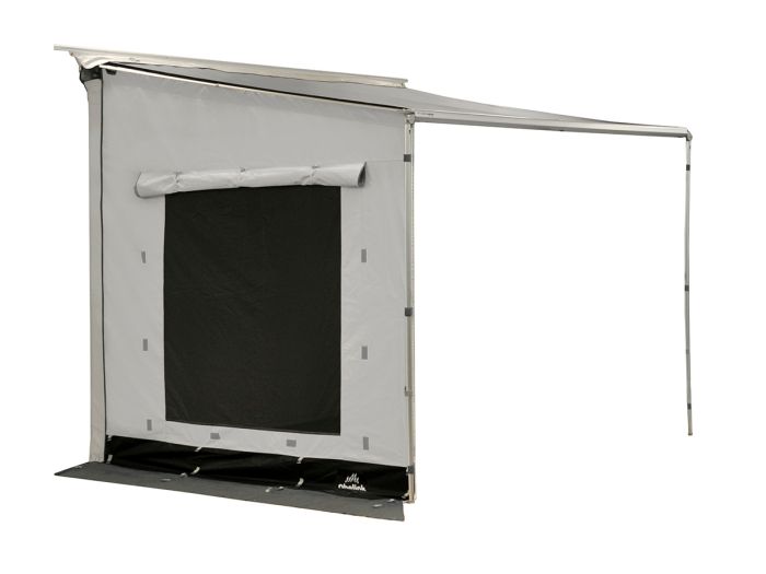 De zijwand is gemaakt van hoogwaardig PVC en is voorzien van een groot horrengaas paneel. Wil je meer privacy of meer schaduw, dan kan je de afdekflap van de zijwand naar beneden laten rollen.