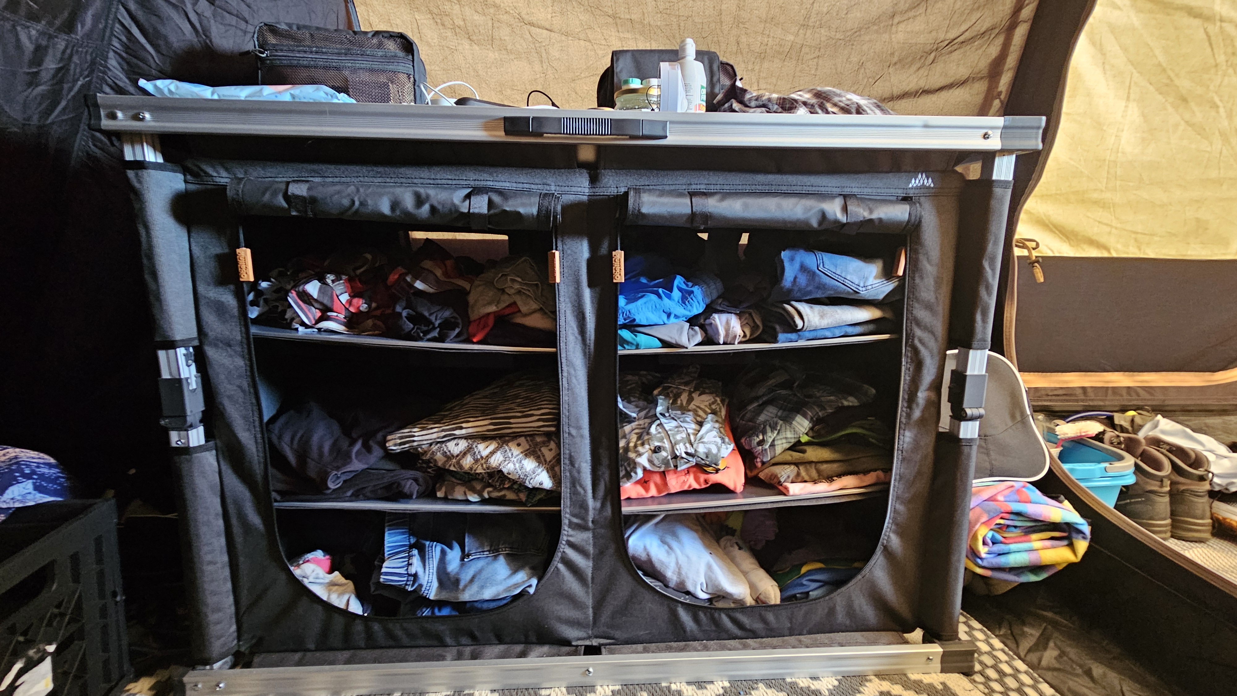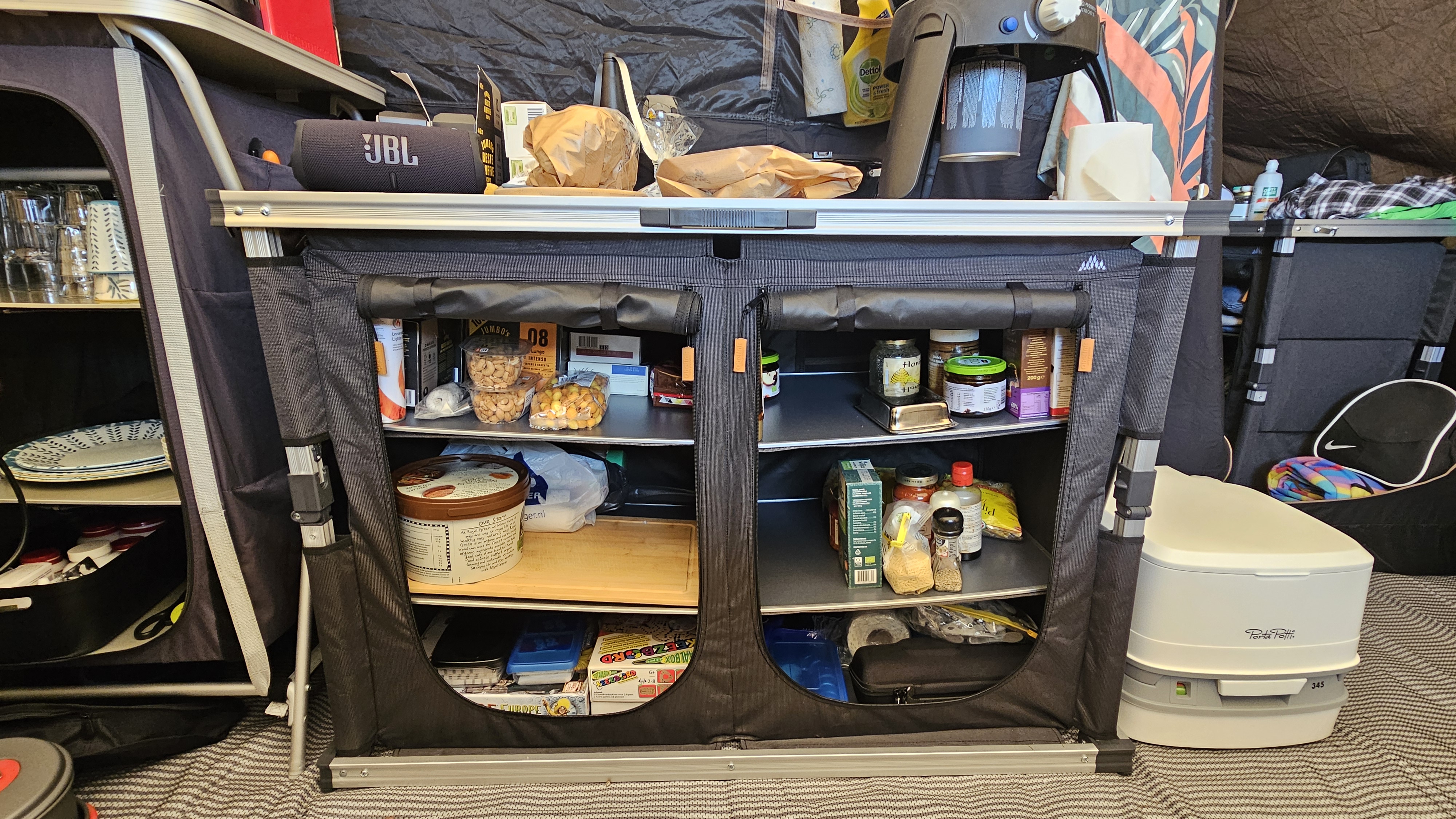 De Obelink Lucca Quick - XL is een stevige campingkast met veel opbergruimte en een bovenblad van MDF.