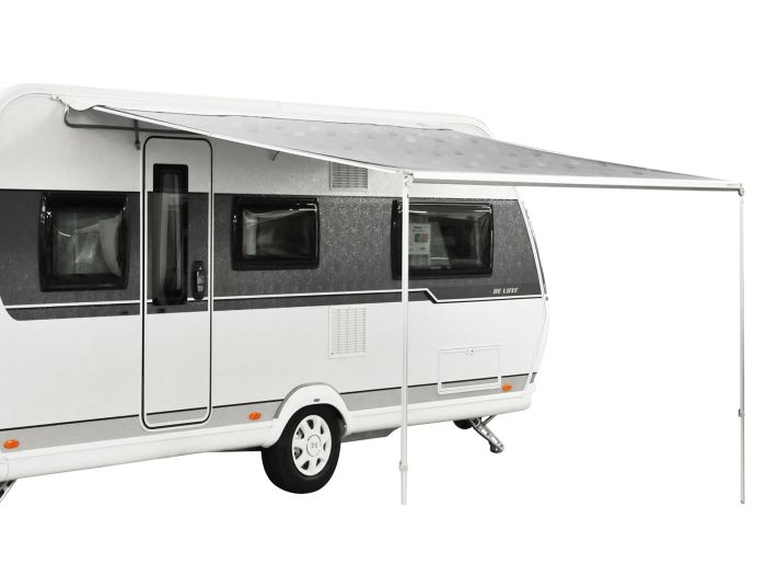 De Obelink Markies ZIP 400 zakluifel is een zakluifel voor de caravan met een uitval van maar liefst 250 cm en een grijze doekkleur.