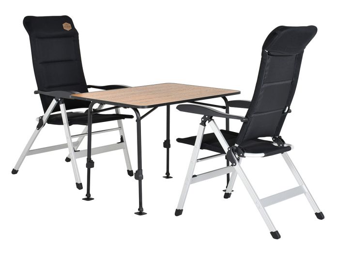 Met deze Obelink Outdoor Superlight 100 tafel en de twee Corsa Black stoelen heb je een lichtgewicht, sterke en comfortabele combinatie voor op de camping, in de tuin of op het balkon.