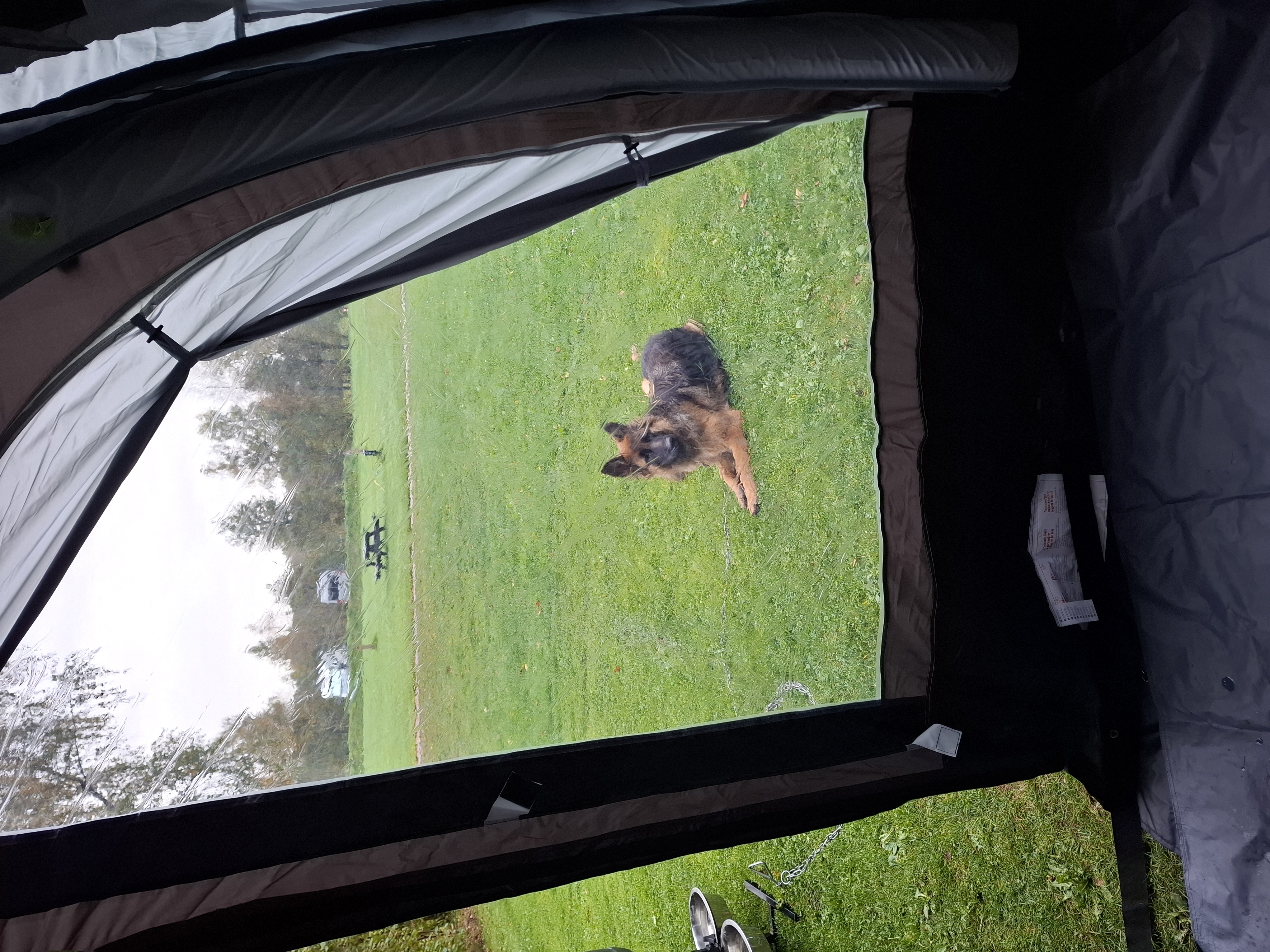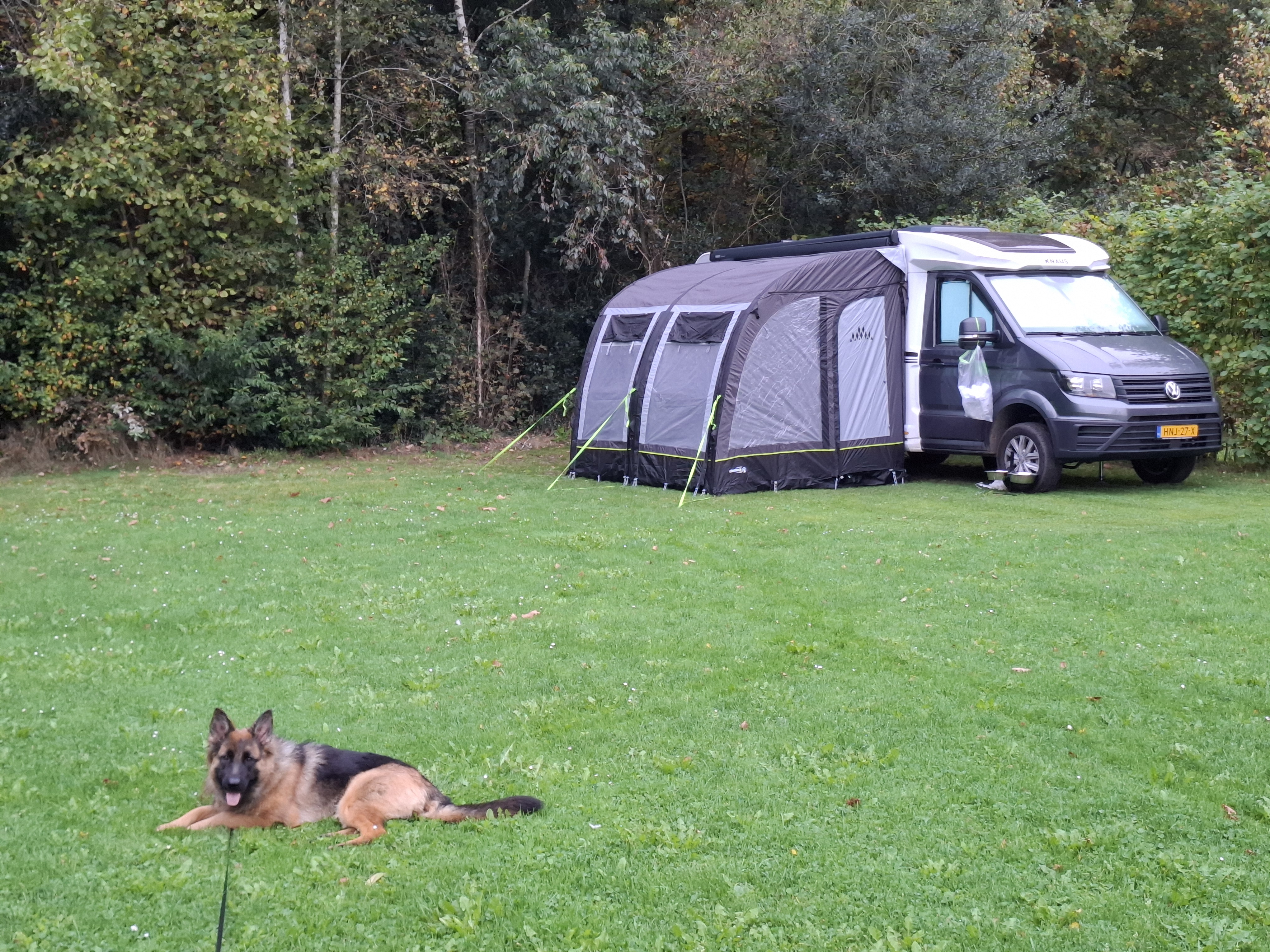 Dit is de linker zijwand wanneer je met je gezicht naar de tent toe staat.