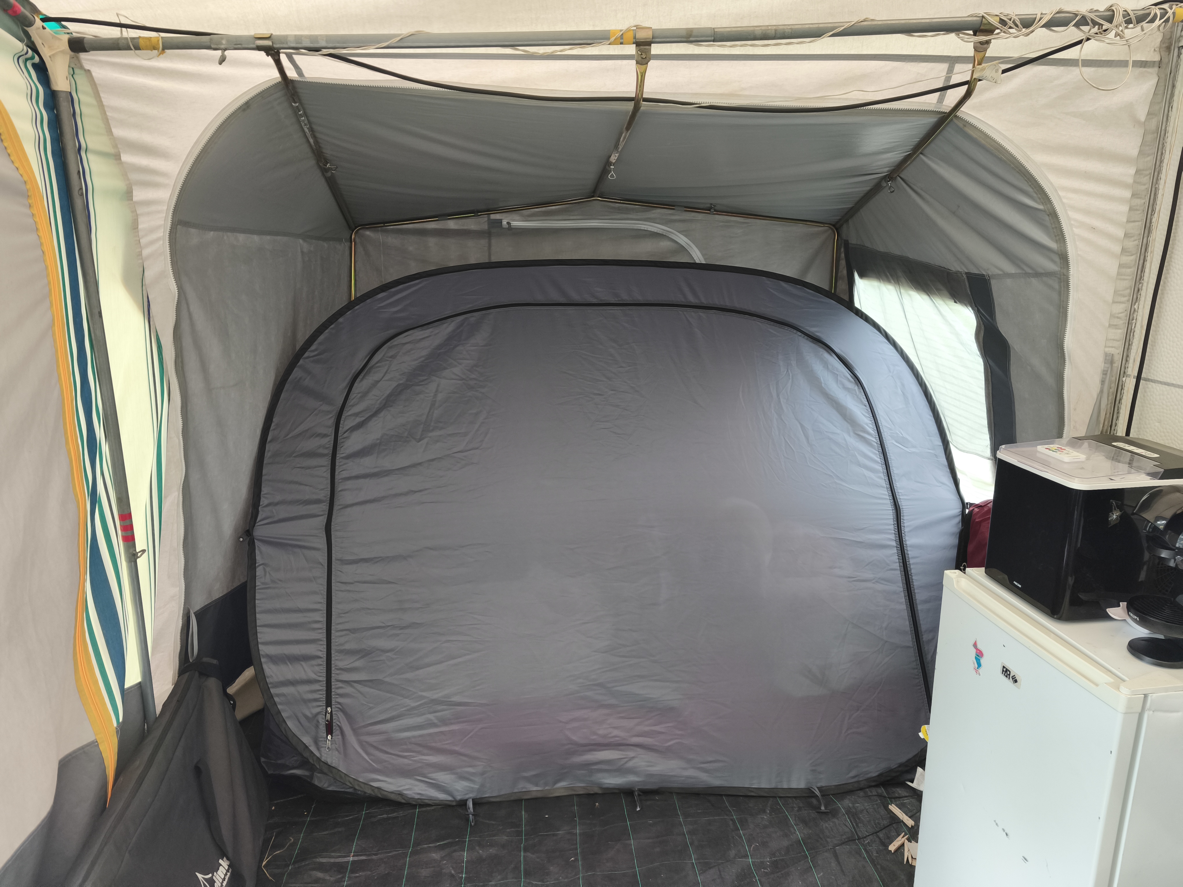 De Obelink Pop Up binnentent is de perfecte oplossing voor wie een extra slaapplaats nodig heeft in tent of voortent maar waar geen passende slaapcabine voor te vinden is. Deze binnentent staat dankzij het pop-up systeem binnen handomdraai opgezet en biedt dus zelfs voor onverwachte gasten een uitkomst!