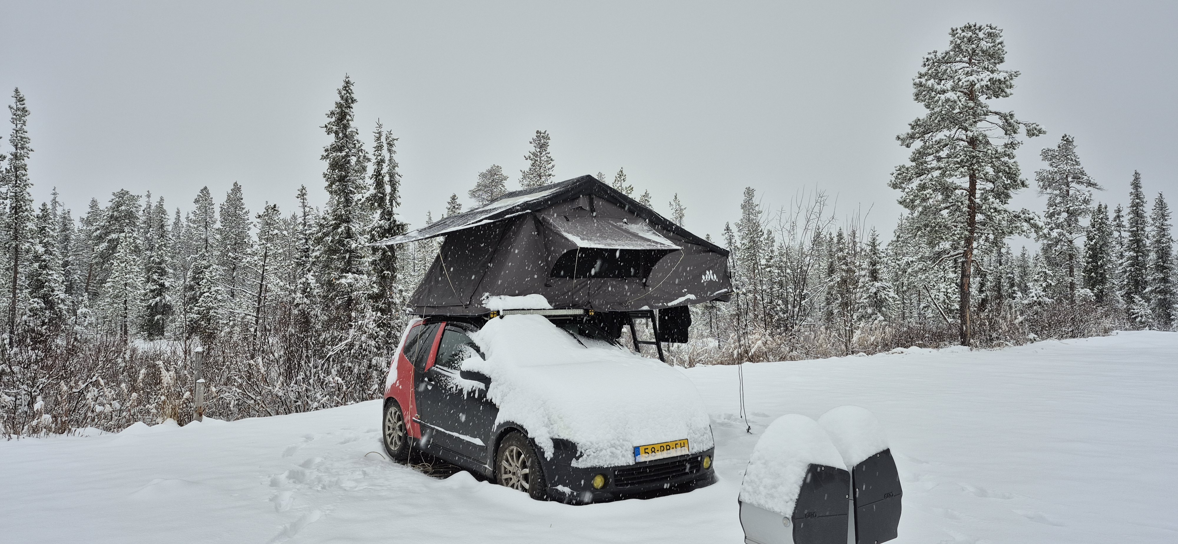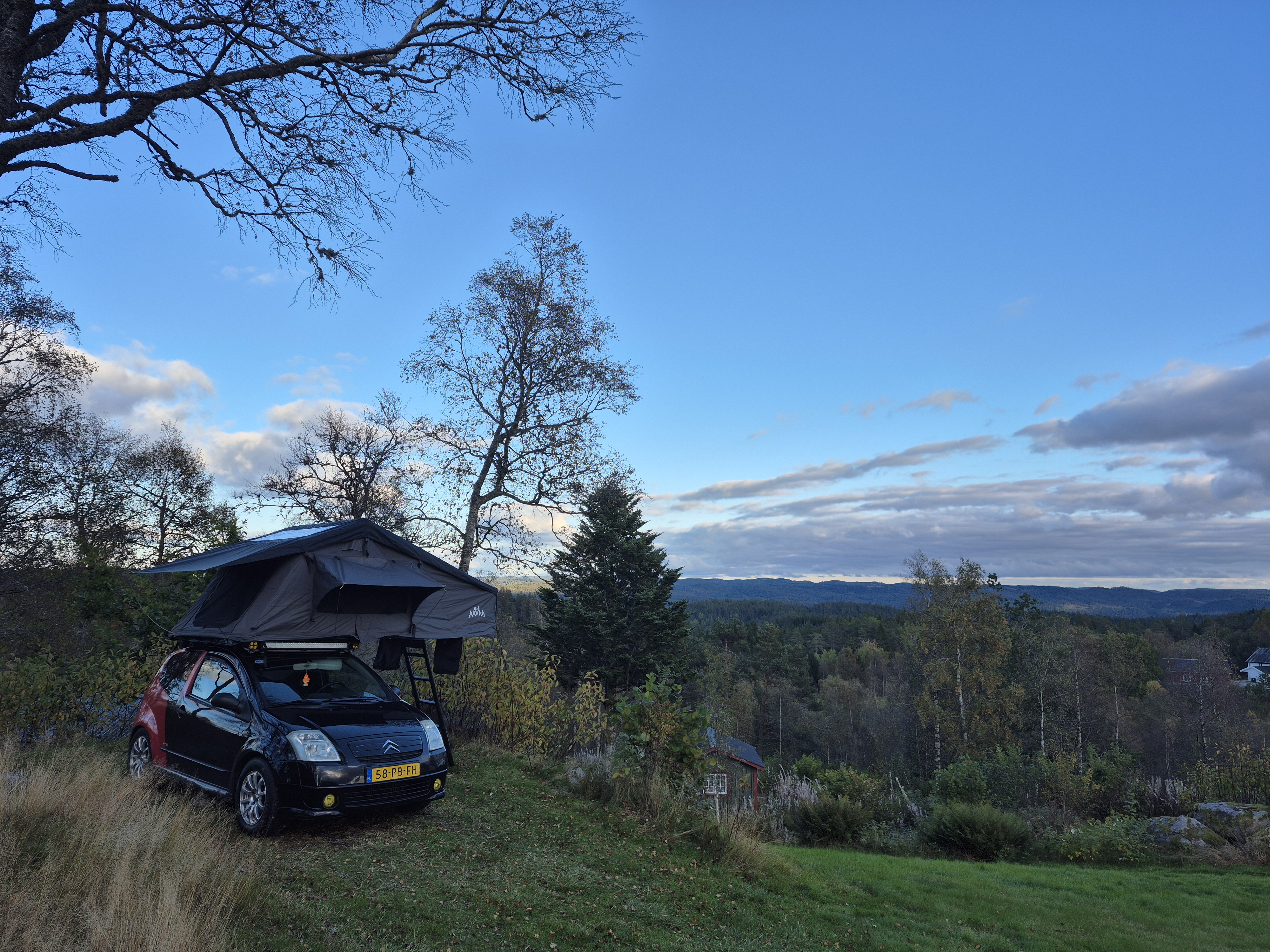 De Obelink Skyfold 160 is een ruime 2-persoons daktent met overdekt voorportaal.