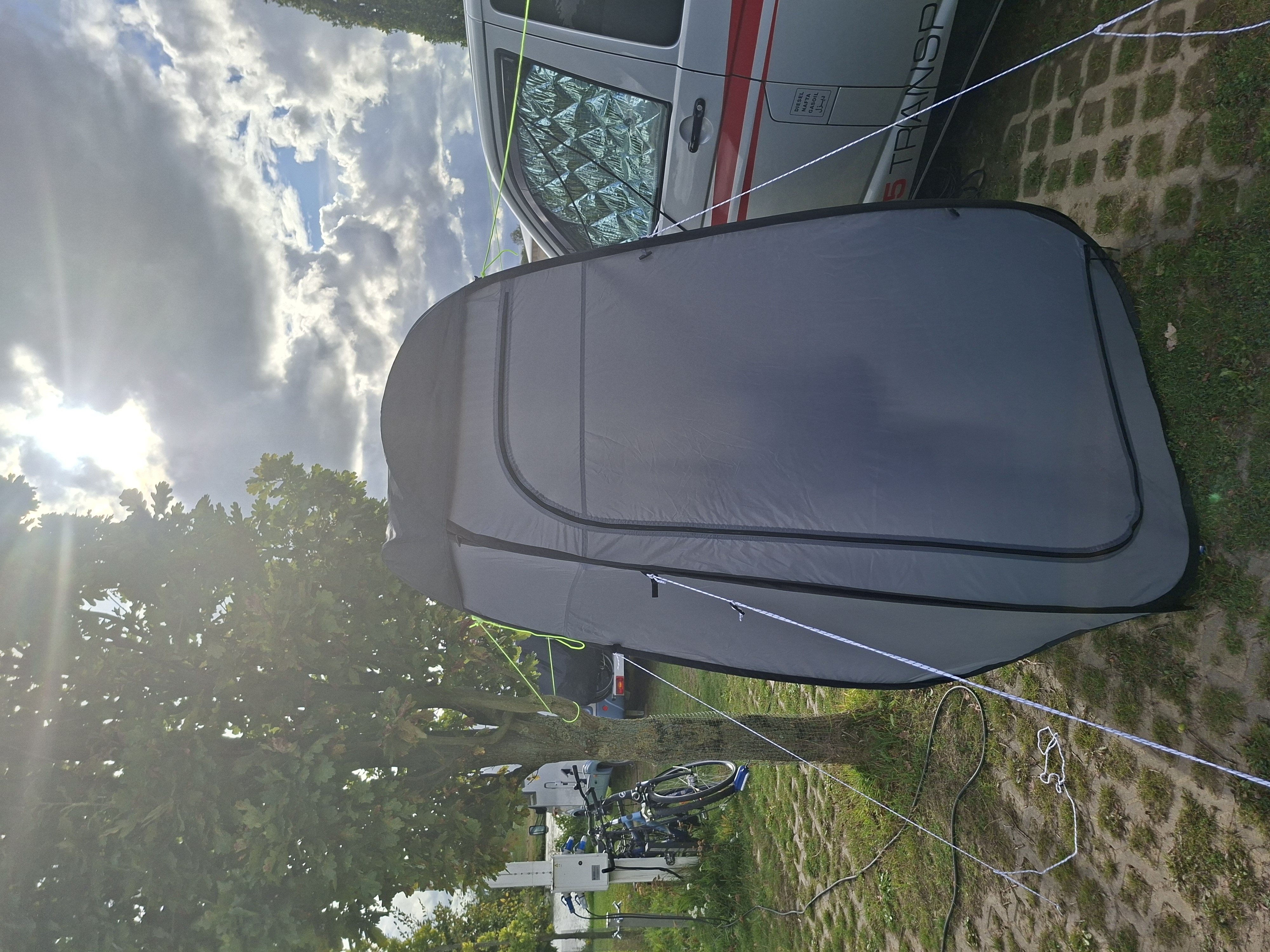 Een vrijstaande tent kan ook zonder camper of bus blijven staan. Dit is vooral handig wanneer je op pad gaat, maar de tent niet wilt afbreken.