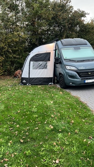 Deze tent, voortent of luifel is voorzien van opblaasbare luchtslangen i.p.v. tentstokken.