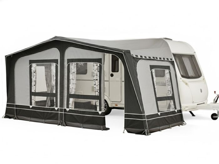 De Obelink Umbria 270 maat 13 (951 - 975 cm) caravanvoortent is een volledige voortent voor caravans met een omloopmaat tussen 951 en 975 cm.
