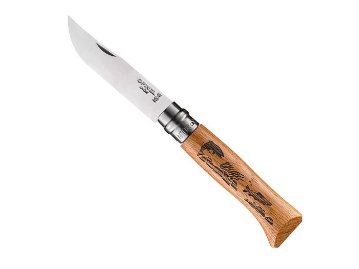 Het speciale karakter van deze serie wordt benadrukt door het eiken handvat. Het eendelige heft is gemaakt van gedroogd, lang gerijpt beukenhout en beschermd tegen vocht door een speciale coating. In overeenstemming met het thema van de collectie heeft dit model lasergegraveerde motieven van verschillende wilde dieren op het handvat. Het beproefde Virobloc-systeem vergrendelt het lemmet betrouwbaar in de open en gesloten stand.Het Franse bedrijf Opinel is al sinds de oprichting in 1890 in familiebezit - het beroemde icoon van Frans vakmanschap staat tot op de dag van vandaag voor uitzonderlijke duurzaamheid en hoge kwaliteit.