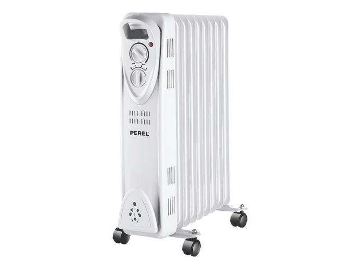 Deze olieradiator van Perel is ideaal als bijverwarming. Het toestel heeft een vermogen van 2000 W en is uitgerust met 9 ribben, drie warmtestanden en een thermostaat. Daarnaast heeft de radiator ook vier wieltjes, een handvat en een kabelhouder waarrond je de kabel kan wikkelen. Omdat het oliegevulde verwarmingstoestel mobiel is, kan je hem gemakkelijk en snel overal plaatsen waar warmte nodig is. Dit type verwarming werkt op olie, die wordt opgewarmd. Hierdoor blijft de verwarmer nog lange tijd na uitschakeling warmte afgeven. Dankzij de oververhittingsbeveiliging en de kantelbeveiliging wordt het toestel onmiddellijk uitgeschakeld wanneer het te warm wordt of het omvalt.