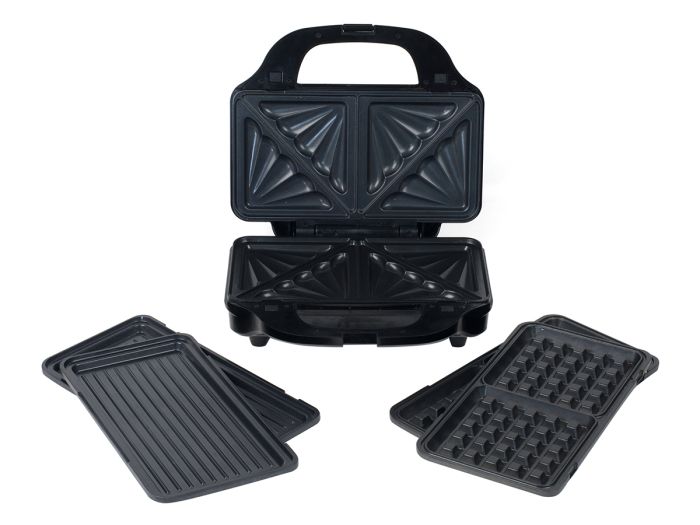 Een tosti ijzer met drie verwisselbare platen om alle gerechten te bereiden van broodjes en wafels, tot steak en hamburgers. Het tosti apparaat heeft een fijn formaat. Neem hem dus makkelijk mee op bijvoorbeeld vakantie, naar de camping of op reis.