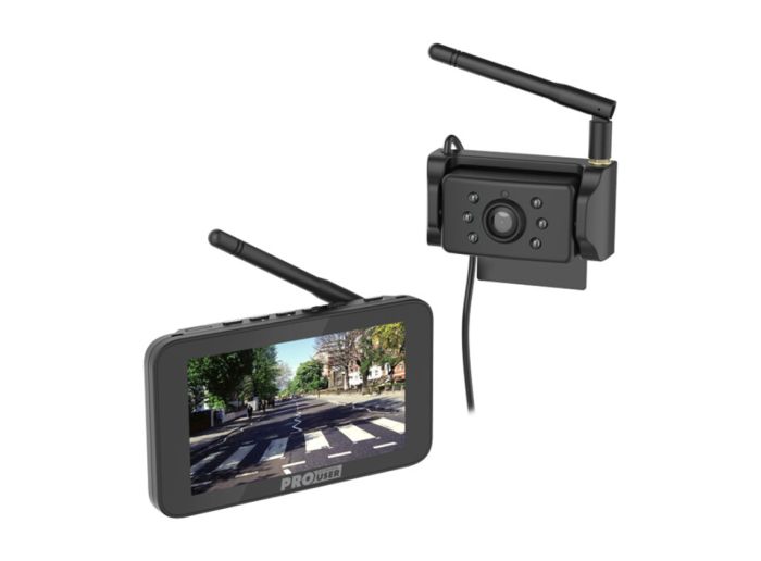 Het Pro-User DRC5040 digitaal draadloos camerasysteem geeft je perfect zicht achter je voertuig, of je nu rijdt met een caravan, camper of aanhanger. Het systeem bestaat uit een camera en een helder 5 inch display met een resolutie van 854 × 480 pixels. Dankzij de draadloze verbinding op 2.4 GHz heb je binnen enkele minuten alles gebruiksklaar, zonder gedoe met kabels.