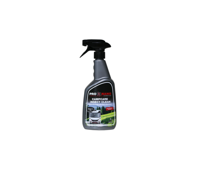 ProNano CampCare Insect Clean is een product dat speciaal is ontwikkeld voor het verwijderen van insecten van de carrosserie en ruiten van alle soorten voertuigen. Het geconcentreerde product is contactloos aan te brengen, geen borstel of sponsje nodig. Spoel de insecten eenvoudig van uw voertuig. Veilig voor alle oppervlakken en laat geen stoten achter.