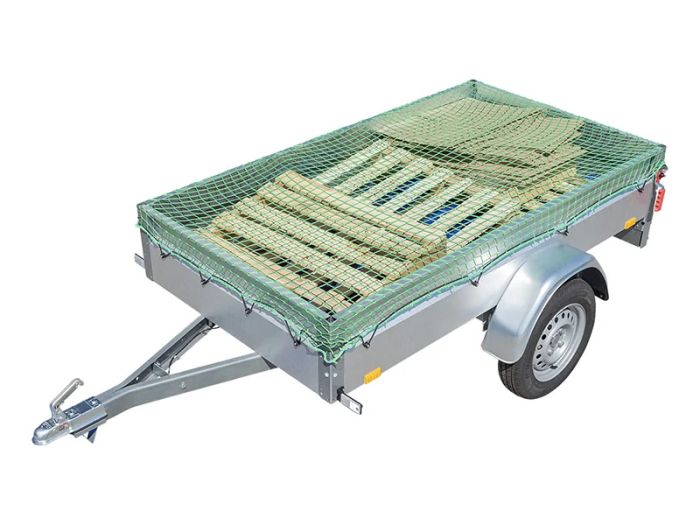 Dit aanhangernet is zeer geschikt voor het afdekken van losse ladingen zoals puin, takken en ander los materiaal in aanhangers. Met een maaswijdte van 45 x 45 mm zorgt dit net ervoor dat (delen van) de lading niet van het voertuig kunnen vallen. Het net is gemaakt van groen UV-bestendig PP-garen met een dikte van 3 mm en wordt geleverd in een opbergtas. Dankzij het Ø5 mm elastisch koord is het net makkelijk strak te spannen aan de bevestigingspunten op de aanhangwagen. Het aanhangernet heeft een afmeting van: 2 x 3,5 m.