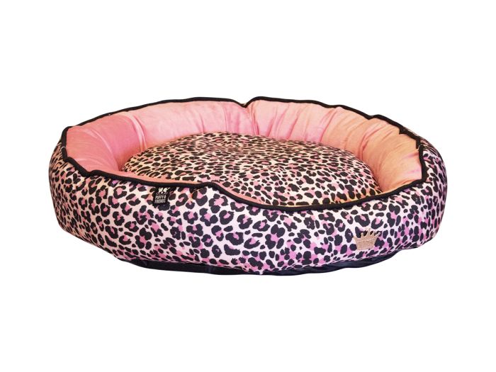 Dit Made in Italy hondenbed combineert een elegant roze pantermotief met comfort en gebruiksgemak. Dankzij de ronde donutvorm kan je hond zich veilig oprollen en genieten van een knusse rustplaats die perfect past in stijlvolle interieurs.