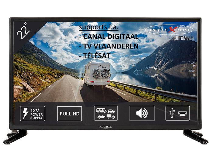 Het technologische hoogtepunt van allemaal... eersteklas televisie met de nieuwste technologie. Das technische Highlight von allen: Premium-Fernsehen mit modernster Technik. Het technologisch hoogtepunt van allemaal… eersteklas televisie met de nieuwste technologie. Das technische Highlight von allen: erstklassiges Fernsehen mit modernster Technik. De Reflexion tv's laten niets te wensen over. Het apparaat is schokbestendig en speciaal ontworpen voor camping/caravans, vrachtwagens, boten en dergelijke. 12 of 230 volt aansluitspanning, overal inzetbaar. Met de geïntegreerde Triple HD tuner DVB-T2HD, DVB-S2, DVB-C, CI+Slot en de opnamefunctie (PVR) kun je alles ontvangen en bekijken! HDMI- of USB-poorten en het CI+ slot bieden extra afspeelmogelijkheden. Het beeld is vanuit elke hoek vrijwel perfect dankzij de groothoekweergave (178° horizontaal en verticaal).