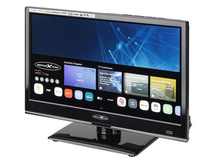 De tv laat niets te wensen over. De apparaten zijn schokbestendig en speciaal ontworpen voor camping/caravans, vrachtwagens, boten en dergelijke. Het maakt niet uit of het 12, 24 of 230 volt is, het is overal te gebruiken. Met de geïntegreerde triple HD-tuner DVB-T2 HD / DVB-S2 / DVB-C + SMART-functie met webOS kunt u alles ontvangen en bekijken! Voor de webOS SMART-functie is een internetverbinding vereist (via de geïntegreerde "RJ45"- netwerkverbinding of draadloos met WLAN)
