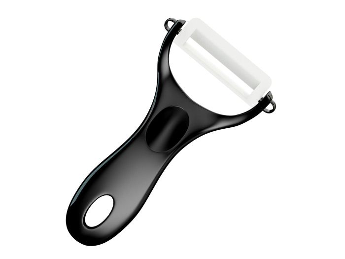 Keramische dunschiller /aspegeschiller met zwarte handgreep.