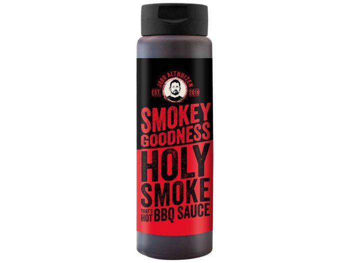 Met de Smokey Goodness Holy Smoke That's Hot bbq saus geef je je gerechten een pittige, rokerige kick die je smaakpapillen echt wakker schudt.