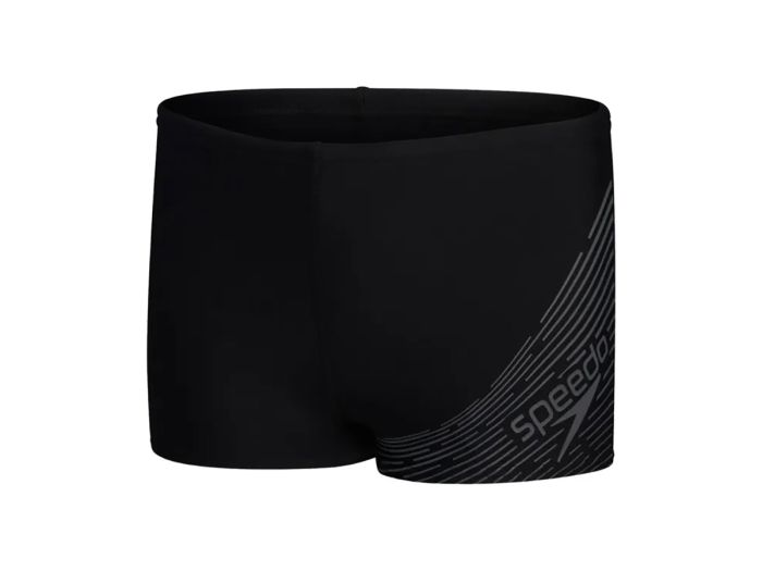 De Speedo Eco Medley Logo jongens zwemboxer - Black/Grey is een korte, nauwsluitende zwembroek met strakke pijpjes en een trekkoord voor een perfecte pasvorm.