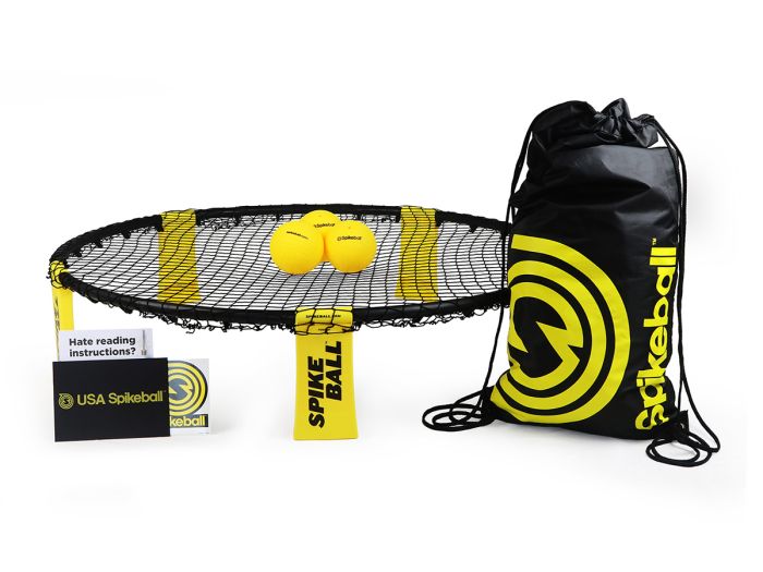 Spikeball is een combinatie tussen volleybal en four square, de spelregels zijn vergelijkbaar met die van volleybal. Het is een leuk, actief en, als je wilt, competitief spel. De Spikeball Standaard set bestaat uit drie standaard Spikeball ballen, een net set, een net, 5 opvouwbare poten en 5 ringdelen, spelregels en een handige tas met trekkoord voor het opbergen en meenemen van het Spikeball spel. Spikeball speel je in de achtertuinen, op het strand, in het park of zelfs binnen. Het spel is snel en eenvoudig opgezet en weer opgeborgen. De opvouwbare poten zorgen ervoor dat het spel tegen een stootje kan en dat het spel compact opgeborgen kan worden. Je kunt altijd mensen vinden om mee te spelen door de gratis Spikeball-app te downloaden, zo kun je in contact komen met spelers bij jou in de buurt.