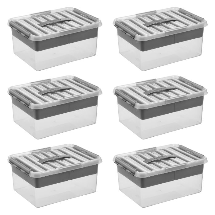 Sunware Q-line 15 liter set van 6 opbergboxen met inzet - Grey