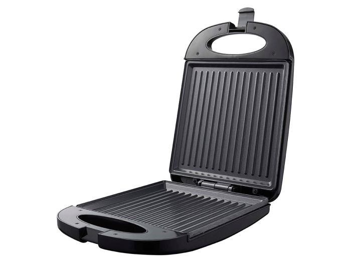 Het kunststof handvat wordt niet heet tijdens het gebruik, zodat je het tosti ijzer gemakkelijk omhoog en omlaag kunt doen tijdens het grillen. Voor extra veiligheid zorgen de antislipvoetjes ervoor dat de grill altijd stevig op het aanrecht blijft staan, terwijl de oververhittingsbeveiliging ervoor zorgt dat de grill niet te heet wordt.
