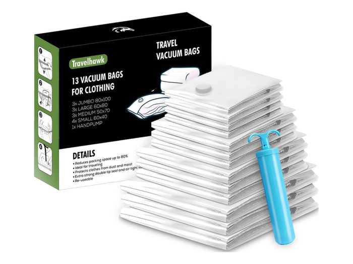 Optimaliseer de opbergruimte van jouw winterdekbed en andere grote textielitems met de Travelhawk Vacuüm Opbergzakken! Deze scheurbestendige vacumeerzakken bieden een handige en efficiënte oplossing om jouw spullen compact en georganiseerd te bewaren.