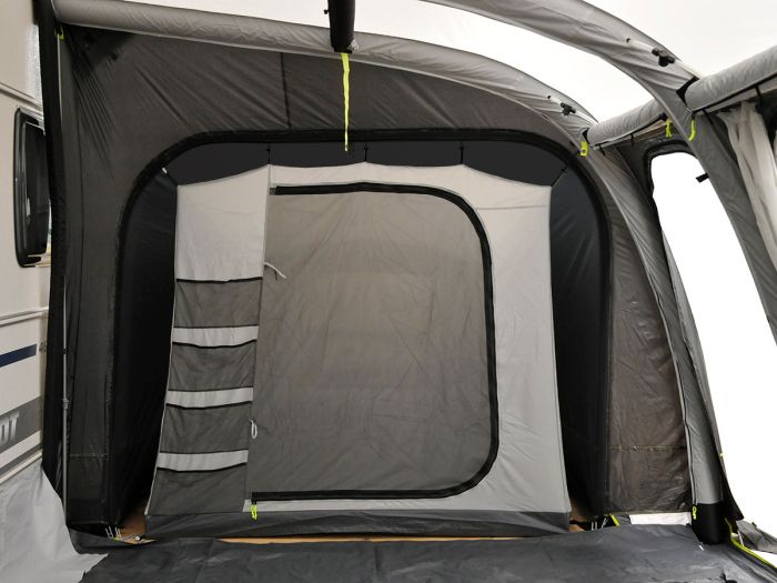 Ben je in het bezit van een Viera 320, Viera 380 of Viera 420 Easy Air Connected caravanvoortent en heb je behoefte aan meer ruimte? Dan is deze uitbouw dé perfecte aanvulling voor je voortent! De uitbouw kan zowel links als rechts geplaatst worden. Heb je behoefte aan veel ruimte? Dan kun je natuurlijk ook twee uitbouwen op je voortent plaatsen. De uitbouw wordt bevestigd op de rits van de zijwand. Rits de zijwand uit de voortent en rits de uitbouw er in. Met de handpomp van de voortent pomp je de uitbouw binnen een paar minuten volledig op. Met de meegeleverde haringen en scheerlijnen zet je hem rondom vast.