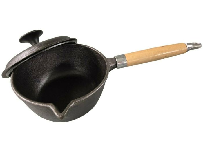 Met een diameter van 17 cm en een hoogte van 8 cm is deze pan ideaal voor het bereiden van heerlijke sauzen, het smelten van boter of het verwarmen van kleine porties. Het hoogwaardige gietijzer zorgt voor een uitstekende warmteverdeling, waardoor je gerechten gelijkmatig en perfect garen. De pan is uitgerust met een ergonomisch houten handvat, dat zorgt voor een comfortabele grip en een veilige bediening. Het tijdloze design maakt deze steelpan niet alleen een praktische aanvulling op je keuken, maar ook een prachtig accessoire voor je kookgerei.