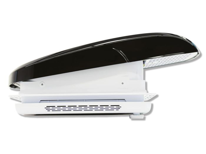 De dakventilator is voorzien van muggengaas, een verduisterend plissé en LED verlichting in het onderkader. De Luxuoso is lichter en stiller dan alle andere vergelijkbare dakventilatoren.