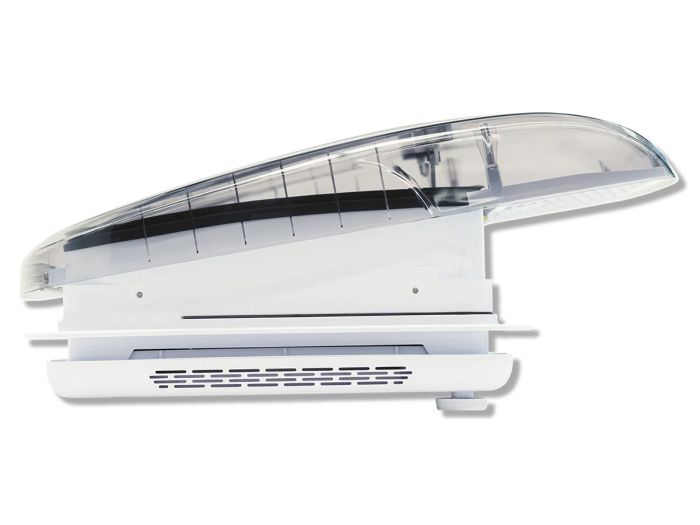 De dakventilator is voorzien van muggengaas, een verduisterend plissé en LED verlichting in het onderkader. De Luxuoso is lichter en stiller dan alle andere vergelijkbare dakventilatoren.
