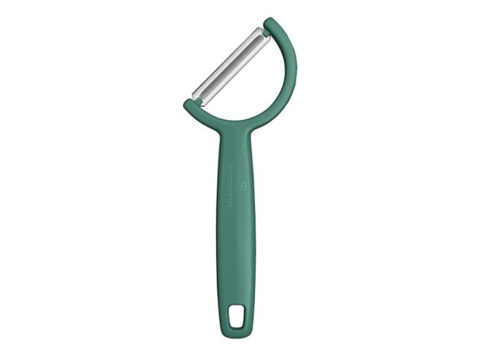 De Victorinox Rho dunschiller - Green maakt het schillen van bijvoorbeeld aardappels, komkommers of appels super eenvoudig.
