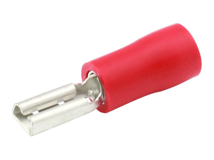 De Vlakke Stekkerhuls Female - Red is een betrouwbare en goed geïsoleerde kabelschoen die zorgt voor een veilige verbinding in elektrische installaties. Deze stekkerhuls is voorzien van een versterkingshuls, een extra bus in het krimpgedeelte, die zorgt voor een stevige grip op de kabel en daarmee de betrouwbaarheid en duurzaamheid van de verbinding verbetert.