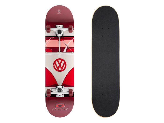 Dit VW skateboard is een graag geziene gast op straat en op skateparken. Door de Abec 9 chromen lagers, de PU wieltjes en 7ply hout is dit behalve een fraai ook een kwalitatief board waarmee je de coolste trucjes kunt doen. De unieke voorkant van de 1 and only T1 bus siert het ontwerp.Ook dit board heeft een officiële Volkswagen licentie.