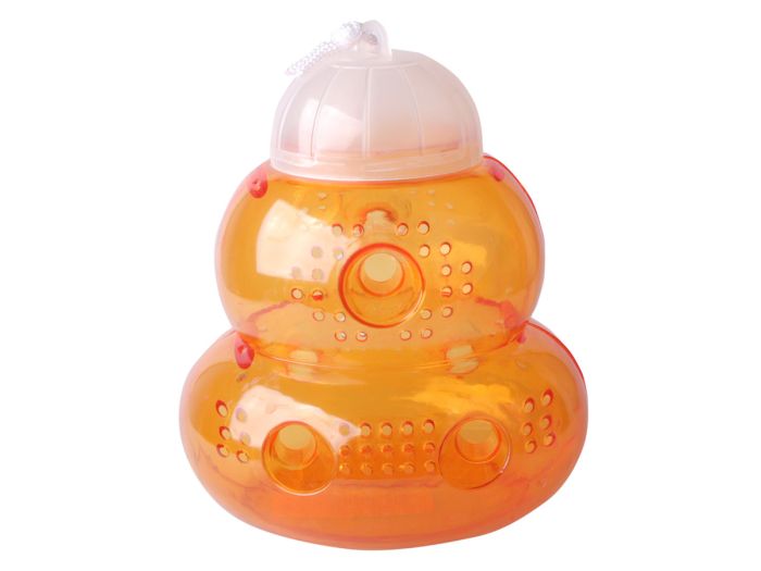 Elk jaar weer een terugkerend probleem: wespen. Met deze wespenvanger kun je zelf de overlast verminderen. Vul de wespenvanger met een zoete vloeistof, bijvoorbeeld ranja en hang of zet hem in de tuin. De wespen zullen door de gaatjes naar binnen gaan en kunnen er dan niet meer uit komen. Als de wespenvanger vol is kun je hem eenvoudig legen, schoonmaken en weer gebruiken.