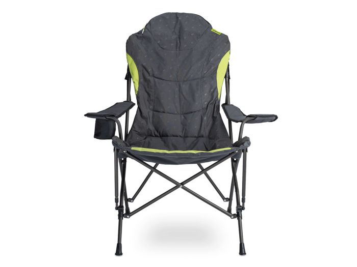 De Stargazer is een luxueuze kampeerstoel. De extra hoge rugleuning is ondersteunend en volledig gestoffeerd voor veel comfort. De opening met rits bovenaan biedt de perfecte opbergruimte voor uw draagtas en vormt een geïntegreerd kussen. Met de verstelbare armriemen kunt u de armhoogte aanpassen aan elke gebruiker. Een geïntegreerde, geïsoleerde drankhouder zorgt ervoor dat uw drankjes koud blijven op warme zomerdagen.